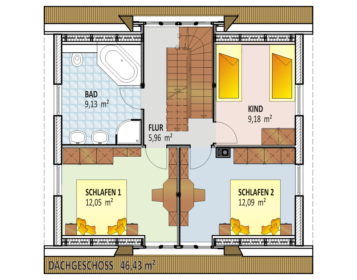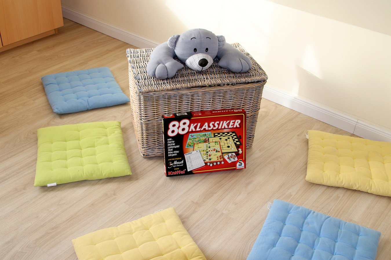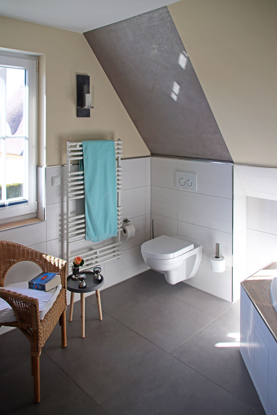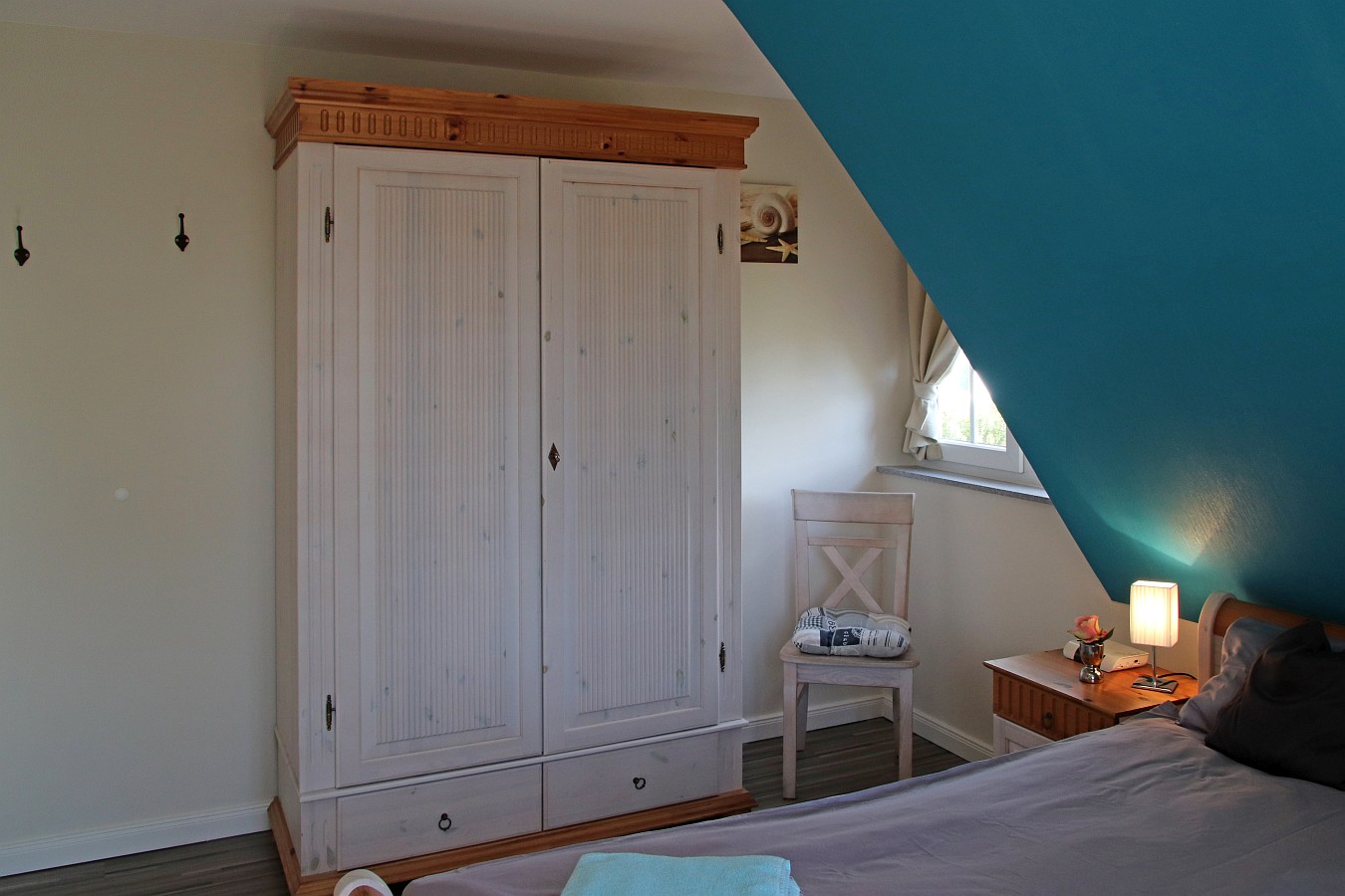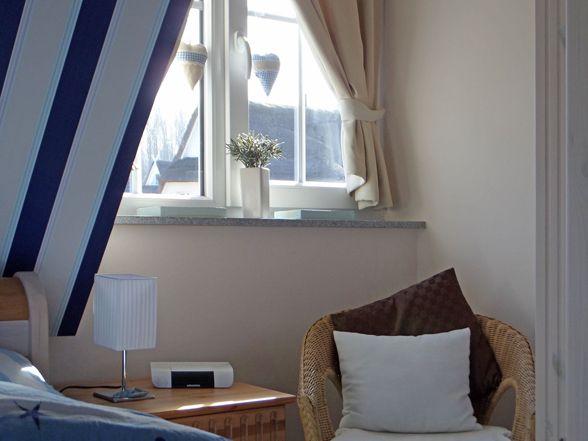 Im ausgebauten, lichtdurchfluteten Dachgeschoss befindet sich ein exklusiver, großer Raum mit 2 Einzelbetten und einer Spielecke mit Spielen und Kinderbüchern. Zusätzlich befindet sich hier ein LCD-Fernseher mit BluRay-Sstem, Radio und Apple Dock. Damit auch unsere kleinen Gäste sicher spielen können, verfügt die Treppe des Dachgeschosses über ein Treppenschutzgitter.