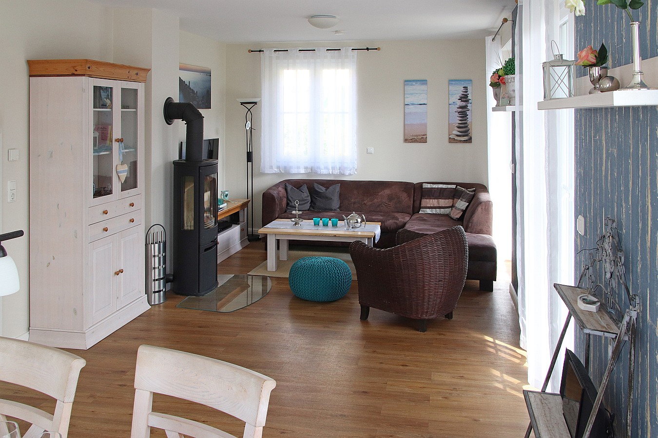 - eine hochwertige Ausstattung im Ess-/Wohnraum. Dazu gehören ein Kaminofen, ein großer LCD- Fernseher, ein BluRay-System mit Radio und Apple Dock, Bücher, Kinderbücher, DVD´s und natürlich auch ein Kinderhochstuhl.
