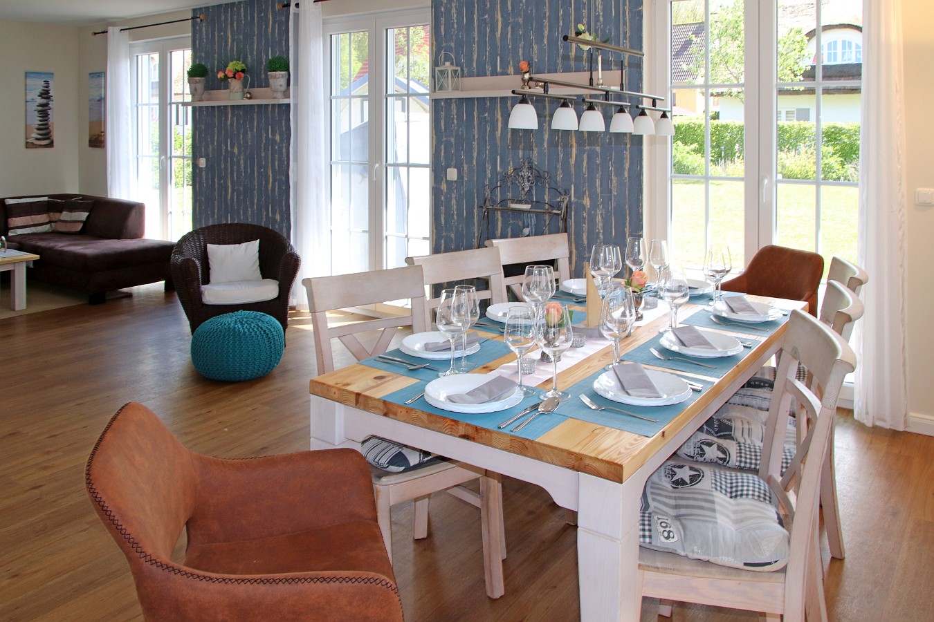 Das liebevoll bis ins Detail gestaltete Ferienhaus ist im edlen Landhausstil familienfreundlich eingerichtet, damit Sie Ihren Urlaub mit Me(h)ermomenten füllen können.