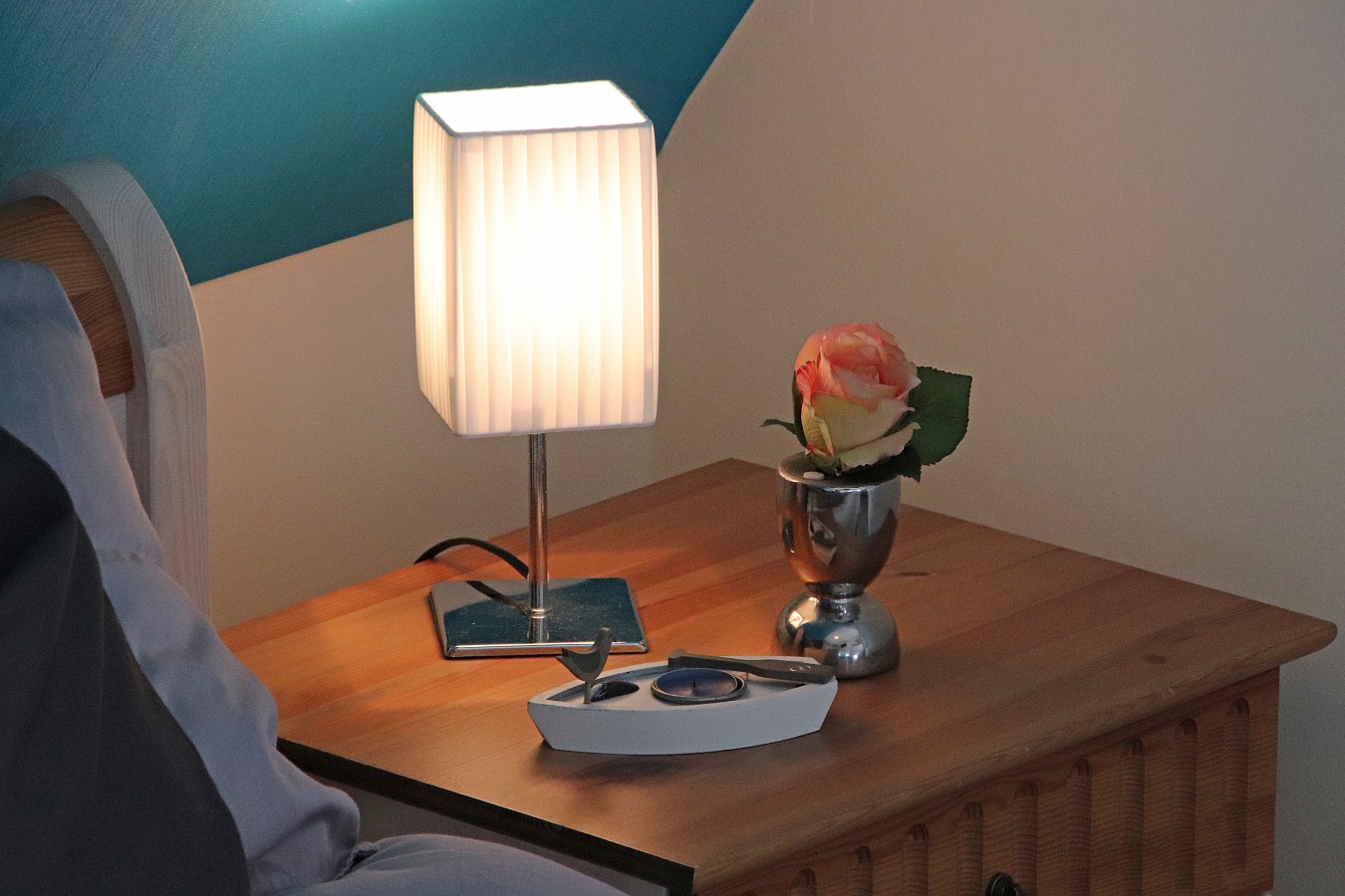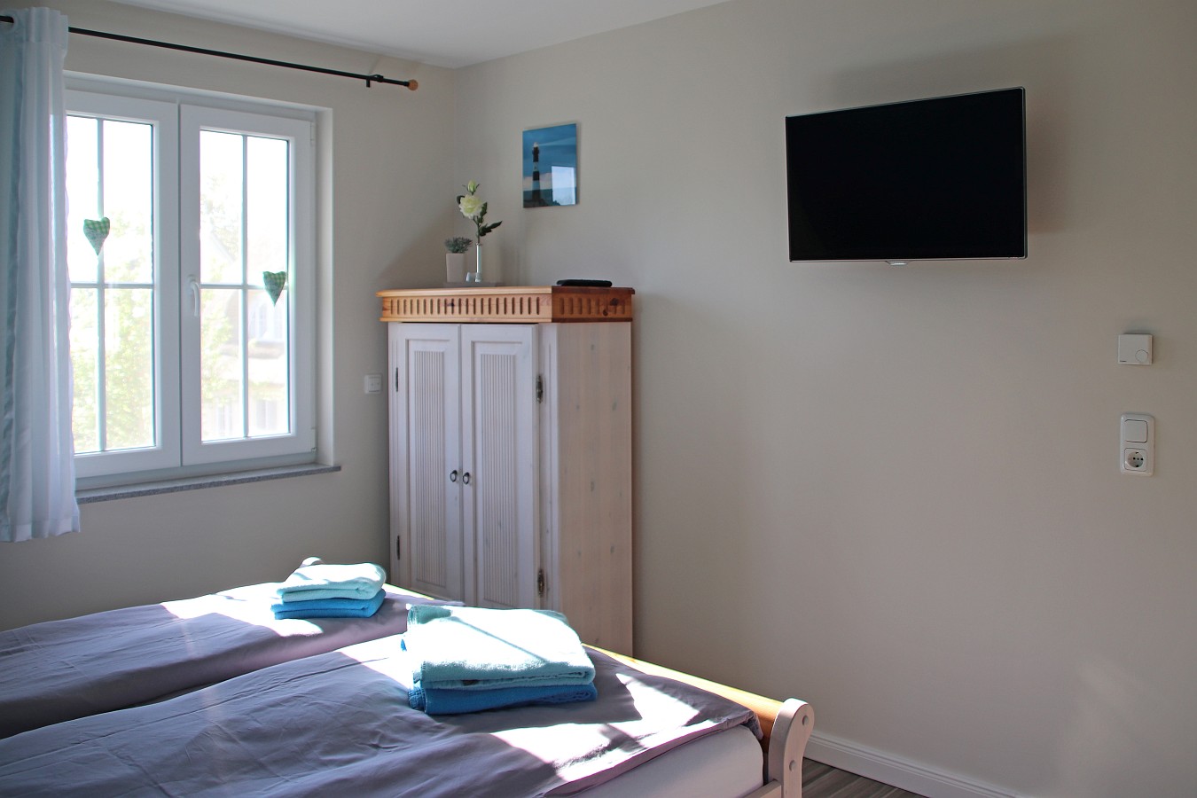 Auch hier finden Sie Insektenschutzgitter vor den Fenstern und zudem Verdunklungsgardinen.