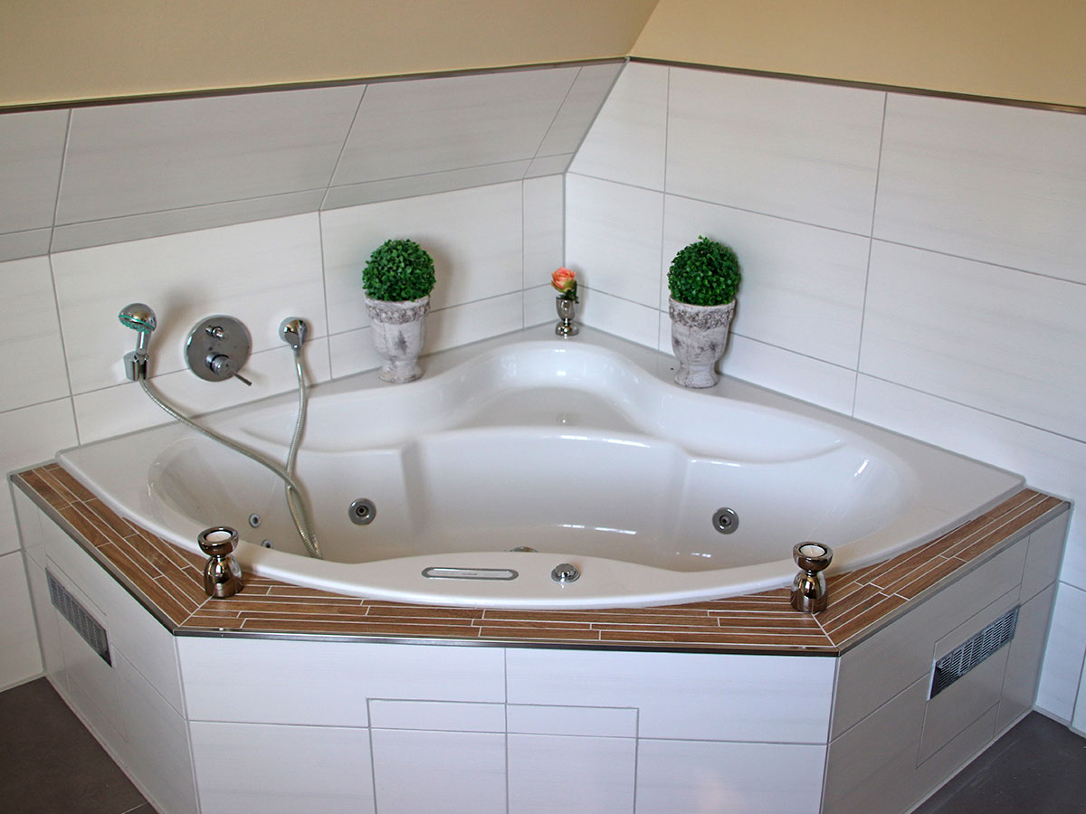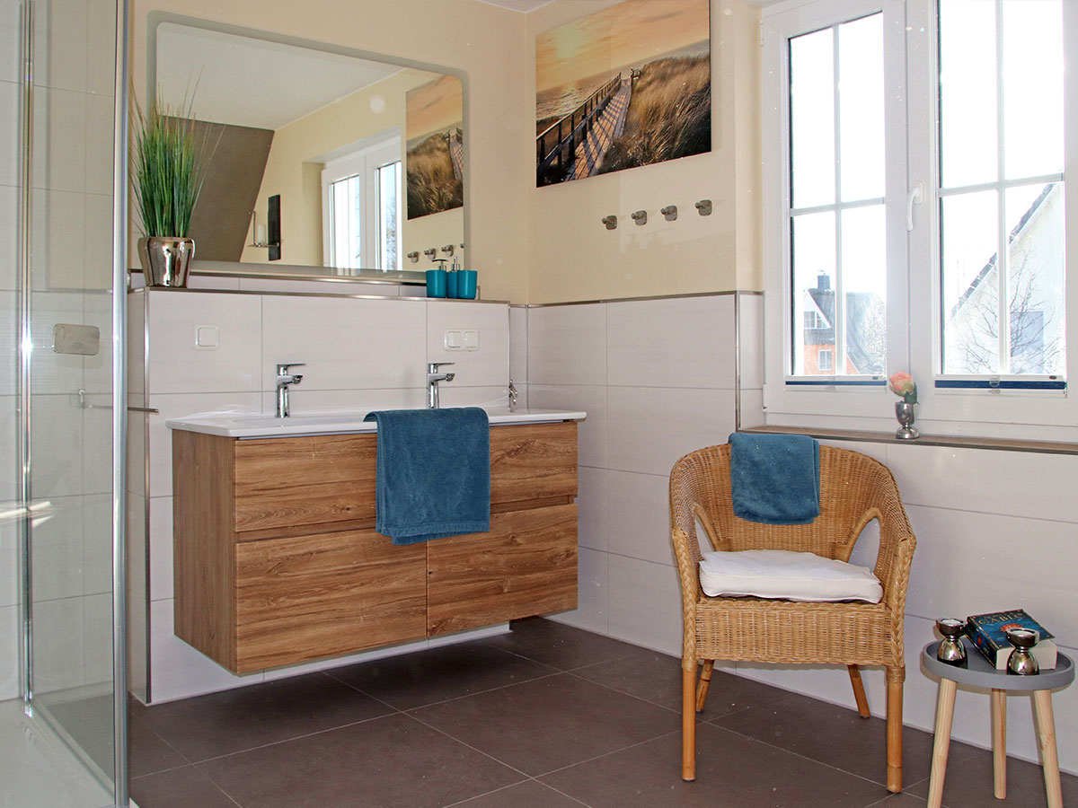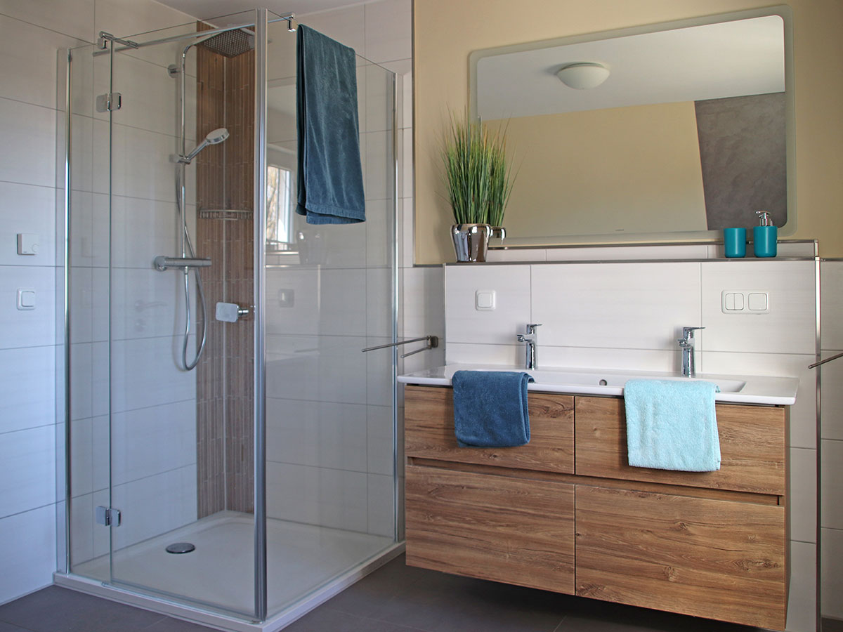 - Bad mit 2 Waschbecken, WC, Dusche Whirlpool im Obergeschoss
