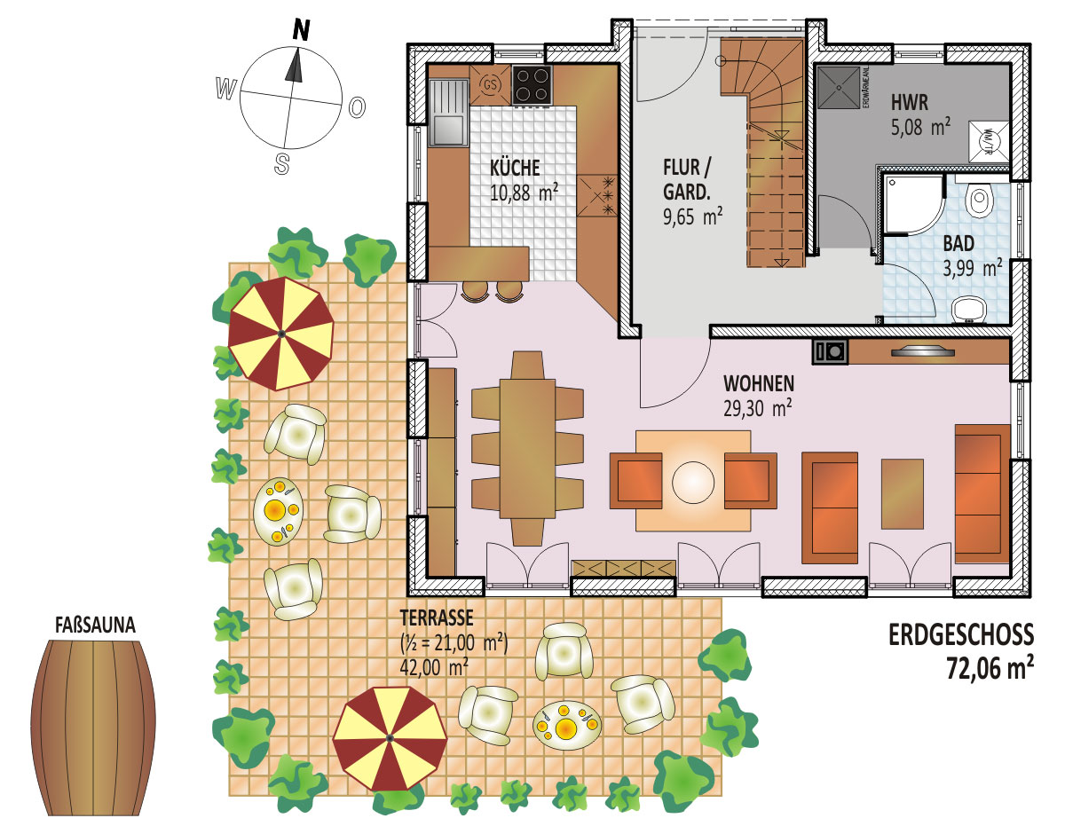 Wenn Sie abends mit Ihrem Espresso auf der großen Süd-West-Eckterrasse in ihrem Strandkorb sitzen, über Wlan im Internet surfen oder einen Wellnessabend in der Fass-Sauna & im Whirlpool verbringen, sollen Sie Ihren wohlverdienten Urlaub rundum genießen...